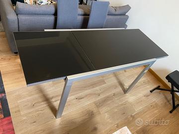 Elegante tavolo da pranzo con piano in vetro e struttura in metallo. - Piano in vetro nero. - Gambe in metallo argentato. Motivo: trasloco. Si prega di venire a ritirare, preferibilmente la seconda settimana di aprile o un po' prima.