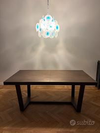 Il tavolo si distingue per il piano di forte spessore da cm 6,5 e per la particolare conformazione del basamento a slitta che si collegano nella parte inferiore creando una "struttura chiusa". La struttura è caratterizzata dalla lavorazione a 45° nei punti di giunzione. Le dimensioni sono 180 (allungabile fino a 240) x 100