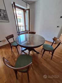 Tavolo da pranzo diametro circa 1 metro in legno (credo rovere) e ripiano protettivo in vetro.