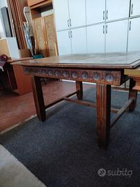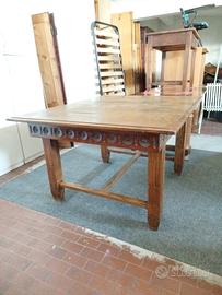 Tavolo da pranzo antico in stile rustico revival in buono stato. Dimensioni: lunghezza 140cm, larghezza 120cm, altezza 82cm.