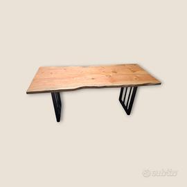 Tavolo da pranzo artigianale in cedro sardo, con piedi in acciaio colore nero opaco, altezza 76 cm, larghezza 77 cm, lunghezza 1,80 m
