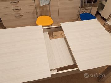 Tavolo da pranzo allungabile come da foto, misure 150 x 90x 78 h chiuso, aperto 190 x90x 78 h. Trasporto e smontaggio a carico dell' acquirente.
