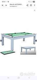 Tavolo come nuovo colore Bianco ,trasformabile in tavolo da pranzo, in tavolo da biliardo e da ping pong. Compreso di tutti gli accessori. Dimensioni 215 cm(lunghezza) 123 cm (larghezza)82 cm (altezza).Non perditempo (no spedizione, ritiro in loco)