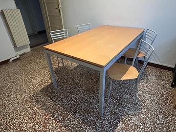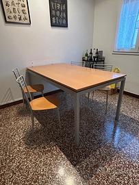Splendido tavolo caliigaris, allungabile, solido con 4 sedute coordinate. Ritiro solo a mano a carico dell’acquirente. Il piano in legno presenta segni di usura, facilmente ripristinabili con una levigatura.