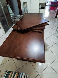 si vende tavolo in legno colore marrone ciliegio. altezza 80cm, larghezza 85cm, lunghezza 1,80m quando è chiuso. allungabile fino a 3,0m. con l'aggiunta di 4 pezzi. ottime condizioni.