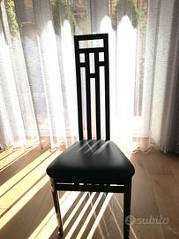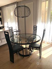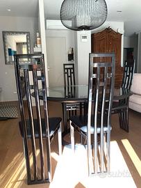 Tavolo da pranzo con 4 sedie in stile anni 70, in perfetto stato. Vetro, metallo, pelle e legno lacato. Si trova a Torino. Causa della vendita è il trasferimento.