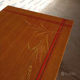 Tavolo da Pranzo con decoro. Struttura in legno impiallacciato. Presenta segni