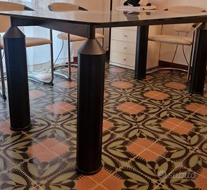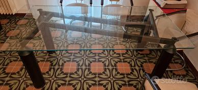 Questo è un tavolo da pranzo LC6, non specificato se di Le Corbusier per Cassina, con piano in vetro e base in acciaio verniciato nero. Misure: 180 cm. x 90 cm.