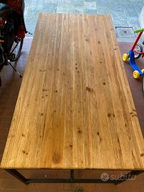 Vendo tavolo Long Island di Maison du monde da otto persone, in abete massiccio e metallo; più quattro sedie Bergmund di Ikea con fodere in tessuto lavabile beige.