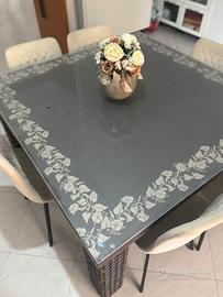 Vendo tavolo da pranzo in legno con vetro temperato+ 6 Sedie in velluto idrorepellente vendibile anche separatamente