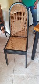 Tavolo da pranzo quadrato (100x100) allungabile a libro (200x100) in legno massiccio noce con gambe nere + 6 sedie nere paglia di Vienna. Prezzo da concordare