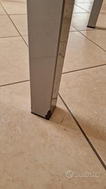 Vendo tavolo da pranzo/cucina dal design lineare e moderno. Il tavolo è caratterizzato da una robusta struttura in metallo e un elegante piano in vetro. È perfetto per chi cerca un arredo funzionale e facile da pulire. Dettagli e Condizioni: Piano: In buone condizioni, qualche graffio visibile in controluce. Struttura: Solida e stabile. Note: Sono presenti alcuni piccoli segni di ruggine alla base di due gambe (come visibile in foto), facilmente trattabili con un convertitore di ruggine o un tocco di vernice spray. Importante: Il tavolo nasceva come allungabile, ma manca la prolunga interna, quindi viene venduto come tavolo fisso. Misure: Lunghezza 140cm Larghezza 80cm Altezza 77cm Ritiro a mano a carico dell’acquirente presso Asolo.
