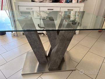 Tavolo in cristallo con base in acciaio, design moderno italiano, ideale per salotti, soggiorni o cucine. Misura 150 X 90. Prezzo 100 euro (già smontato, di facile montaggio) ritiro a mano