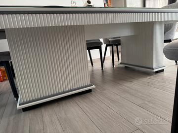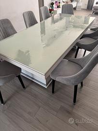 Entrambi hanno appoggiato sopra uno strato di 1 cm di vetro temperato (al tavolo da pranzo abbiamo aggiuto un’ulteriore copertura in plastica trasparente che eventualmente regaliamo)