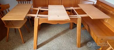 Questo tavolo allungabile è una fascia alta d'artigianato altoatesino in condizioni impeccabili fatto per essere ammirato oltre che usato,specialmente se in accoppiata con la sua cassapanca.