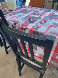 Viene venduto con 5 sedie, 1 delle quali più rovinata (come si vede in foto) le altre in huone condizioni con qualche graffietto superficiale