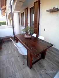 Vendo splendido banco da falegname originale in legno massello, restaurato e trasformato in tavolo da pranzo. Pezzo unico dal grande carattere, con segni autentici del tempo che lo rendono perfetto per ambienti in stile industriale, rustico o moderno. Il piano è stato recentemente trattato e protetto, mantenendo l’aspetto vintage ma con finitura calda e resistente, pronto all’uso. Struttura estremamente solida e stabile. Presente anche la morsa originale ma modificata, dettaglio raro e molto apprezzato. Ideale per casa, taverna, loft o locale (ristorante, enoteca, showroom). 📏 Misure: 160 cm x 70 cm