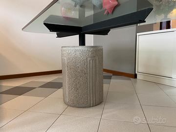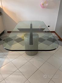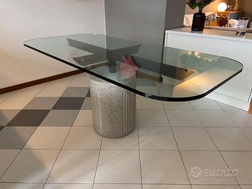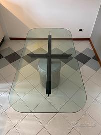 Tavolo da pranzo in cristallo misura 170x85 cm, struttura in ferro verniciato nero, basamento in cemento. Pezzo di design e alto pregio dei materiali disegnato da Giovanni Offredi per Saporiti Italia.