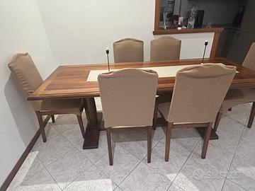Vendo tavolo da pranzo in legno massello, completo di 6 sedie imbottite con coprisedie in tessuto. Design classico, adatto sia a cucina che sala da pranzo. Il tavolo è solido e stabile; presenta alcuni segni di usura sulla superficie, facilmente riparabili con una semplice manutenzione (lucidatura o restauro leggero). Le sedie sono comode e in buone condizioni. ✔ Struttura robusta ✔ 6 sedie incluse ✔ Coprisedie lavabili ✔ Segni di utilizzo presenti ma sistemabili Disponibile da subito Trasporto a carico dell’acquirente. Il prezzo è trattabile