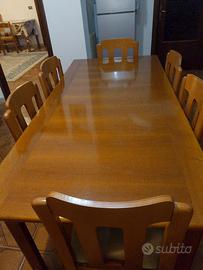 Vendo bellissimo tavolo da pranzo in legno massiccio, completo di 6 sedie coordinate. Il set è in ottime condizioni، robusto e ben tenuto. Ideale per sala da pranzo o cucina spaziosa