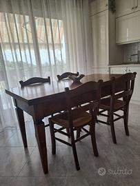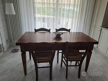 Vendo tavolo da pranzo in legno di noce allungabile con 4 sedie abbinate. Lunghezza chiuso= 160cm Lunghezza allungato= 200 cm o 240 cm a seconda dell’occorrenza Larghezza=80 cm Altezza= 81 cm