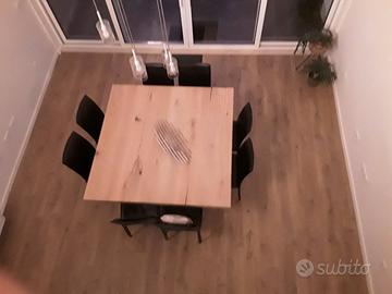 Tavolo da pranzo quadrato rovere artigianale e nero (150 cm). Praticamente non usato. Piano 6 cm spessore.
