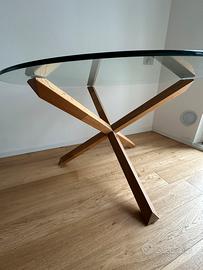 Vendo Tavolo da pranzo rotondo con piano in vetro temperato e gambe in rovere massello . Il legno è trattato con olio per proteggerlo ed esaltarne il colore naturale. Ø119 x H76 cm. Come nuovo. Acquistato 4 mesi fa. Ottime condizioni. Vendo solo tavolo.