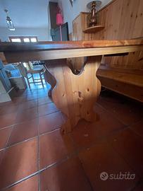 Tavolo da pranzo in legno di pino Dim: cm 160x80x79h Prezzo 120 euro Abbinabile a 4 serie coordinate in legno e paglia (vedi annuncio) Abbinabile a panca a giro coordinata (vedi annuncio)