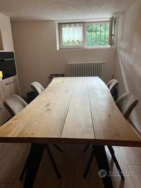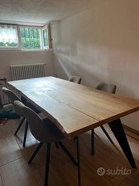 Tavolo da pranzo lunghezza 220cm larghezza 90cm , la forma e irregolare , molto molto bello , presenta un piccolo difetto sul piano , si e leggermete rialzato un listello ma non ne implica l’utilizzo , esteticamente molto bello , contattatemi per maggiori info e dettagli se si é veramente interessati . Smontaggio e trasporto a carico dell’acquirente