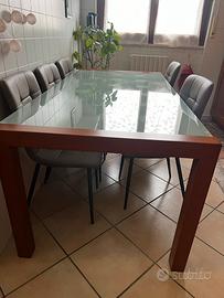 Vendo splendido tavolo con struttura in legno massello e piano in vetro temperato, elegante e resistente.