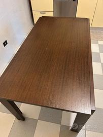 Vendo bellissimo tavolo da pranzo/cucina dal design lineare e moderno, caratterizzato da una finitura in legno scuro (tipo wengé o noce bruno) che si adatta perfettamente sia a contesti classici che contemporanei.