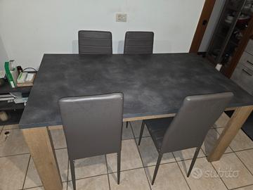 Vendo tavolo da pranzo moderno misura 90×160 cm completo di 4 sedie imbottite abbinate, soluzione ideale per chi cerca stile, praticità e comfort in un unico acquisto.