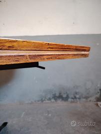 Particolare tavolo da pranzo anni 50 con piano in legno e base in metallo verniciato nero. Misure : 130x130 cm, altezza 75 cm