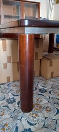 tavolo in ln legno ( noce) ,quadrato 1,40×1,40 sotto bordo in acciaio, piedi massicci.