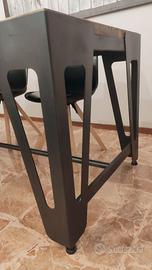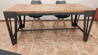 Tavolo stile industriale. Il tavolo è completamente artigianale, realizzato su misura e a mano da un artigiano toscano. E' perfettamente tenuto e raramente utilizzato. Telaio in metallo trattato nero opaco, al tatto poroso. Piano in legno massello alto 4 cm trattato per essere pulito e per poterci mangiare. Altezza regolabile grazie ai piedini che possono adattarsi per equilibrare il tavolo. Misure del tavolo: