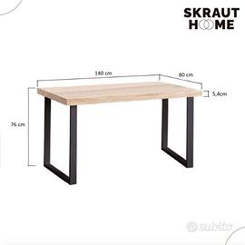 Tavolo da pranzo fisso, soggiorno, piano in rovere massello nordico , gambe in metallo, misure 140x80x76cm di altezza.