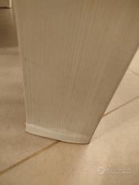 Praticamente regalato! Vendo tavolo da pranzo rettangolare allungabile con piano in vetro bianco e gambe legno pino bianco con le 4 sedie in similpelle bianche abbinate. Il tavolo ha due piccoli rigonfiamenti alla fine di due gambe. Il resto del tavolo è in ottime condizioni.