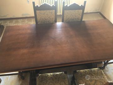 Misure: -lunghezza cm 195 -larghezza cm 89 -altezza cm 81 Con 6 sedie abbinate con tessuto damascato color oro Stile fiorentino Solo ritiro a mano in provincia di Verona Prezzo trattabile, valuto offerte