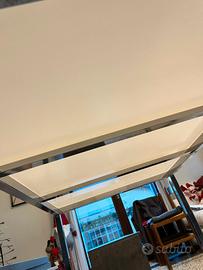 Vendo tavolo rettangolare da pranzo con struttura in acciaio solido e piano in vetro bianco.