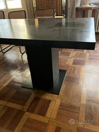 Tavolo da pranzo legno massello listellare, eseguito da un falegname laccato nero altezza piano legno di 5 cm. Due basi in ferro 30x30 base 50x50