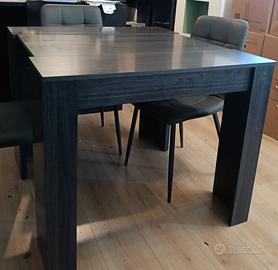 Vendo causa trasloco tavolo a console , allungabile fino a 12 persone , con 4 sedie in ottime condizioni. Tutto è di mondo convenienza, il tavolo è color nero effetto legno e le sedie titanio scuro . Ritiro a cura di chi compra .