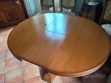 Vendo tavolo da pranzo rotondo in legno massiccio per 6-8 persone, usato ma tenuto in buone condizioni. Dimensioni: diametro 115cm allungabile fino 153cm per ottenere ulteriori 2 posti. Sono presenti entrambi i ganci di chiusura per quando non viene aperto. N. 6 SEDIE COMPRESE, da rifoderare. No perdi tempo, solo consegna a mano. Prezzo poco trattabile