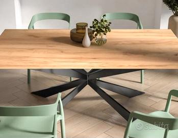 Tavolo da pranzo 180x90 cm top effetto rovere gold 38 mm e gambe incrociate in metallo nero