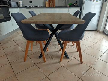 Vendo tavolo da pranzo in legno MDF misura 140x80 con 4 sedie incluse. Il tavolo è in buone condizioni tuttavia presenta segni di usura come visibile dalla foto. Formula visto piaciuto, ritiro a carico dell'acquirente in zona Carrù.