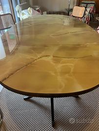 Dimensioni 1m x 2m Piano smontabile dalle gambe Piano in vetro simil marmo, finiture del piano, piedini in ottone. Anni 50 In buonissimo stato Trasporto a carico di chi compra Vicino siena