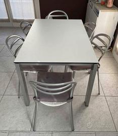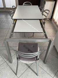 Tavolo allungabile da 6/8 persone con struttura in alluminio e ripiano in laminato antigraffio.