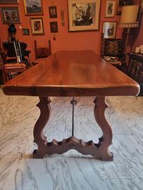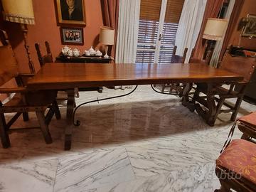 Vendo tavolo da pranzo spagnolo, in legno massello,250x80x80. Il piano è in buone condizioni, con gambe in legno lavorato e rinforzo in ferro battuto.