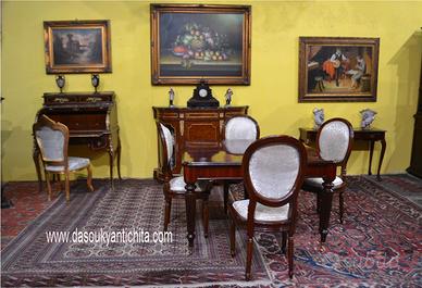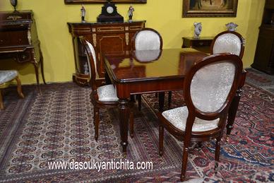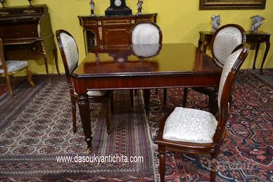 Dimensioni: Larghezza 120 cm. Profondità 120 cm. ( aperto con quattro allunghe 324 cm. ) Altezza 80 cm.