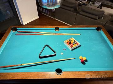 dieci posti a sedere comodi - legno massello, piano in ardesia - scoperchiato diventa un bellissimo biliardo - stecche e accessori inclusi, sedie escluse - dimensioni 233x133x80h - trasporto a carico dell'acquirente - altre foto disponibili