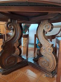 Tavolo da pranzo tondo in stile Baroccoin legno massello di noce. Sostegno centrale con quattro gambe sagomate a "S" (volute), che si uniscono a un incrocio a terra per garantire massima stabilità. Tavolo espandibile. prezzo trattabile in regalo 6 sedie